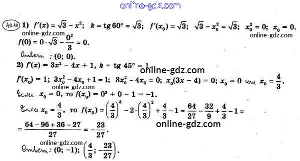 Готовые домашние задания по Алгебре за 10 класс Учебник Мерзляк, Номировский Алгоритм успеха Углубленный уровень 2019 - §40. Уравнение касательной 40.10
