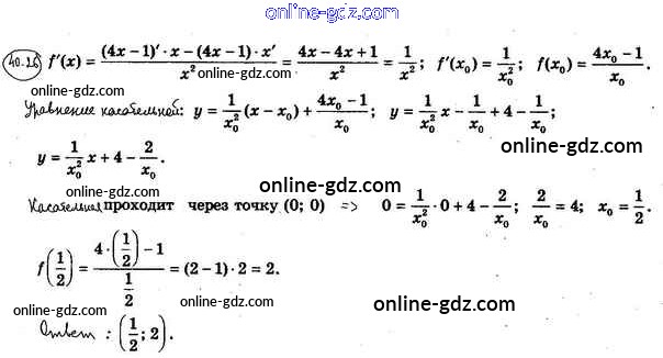 Готовые домашние задания по Алгебре за 10 класс Учебник Мерзляк, Номировский Алгоритм успеха Углубленный уровень 2019 - §40. Уравнение касательной 40.26