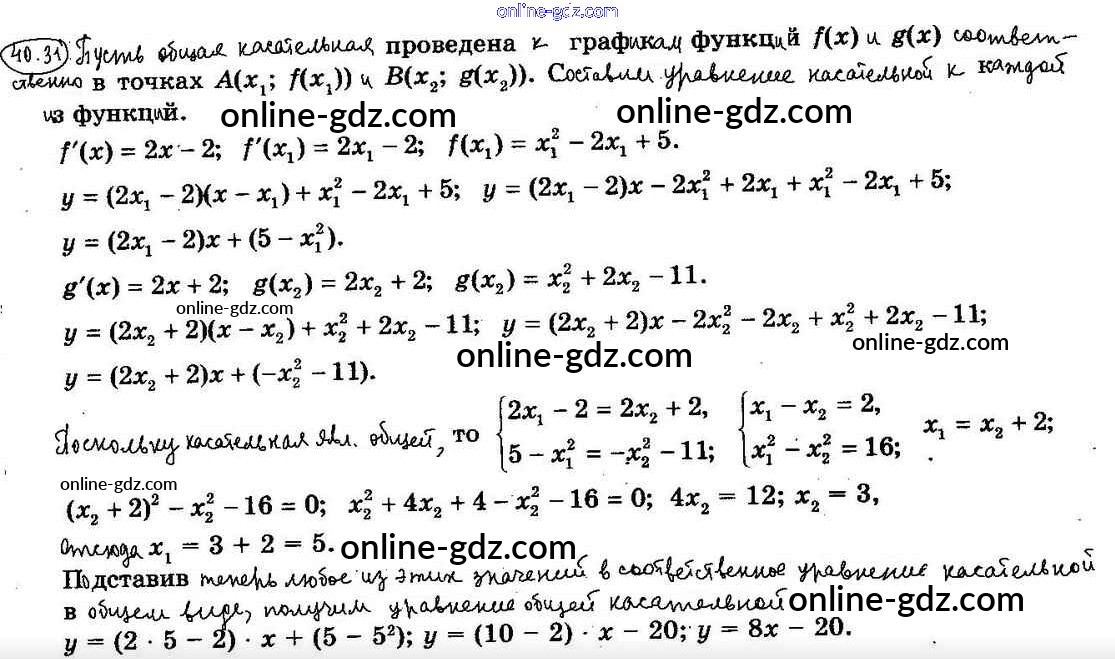 Готовые домашние задания по Алгебре за 10 класс Учебник Мерзляк, Номировский Алгоритм успеха Углубленный уровень 2019 - §40. Уравнение касательной 40.31