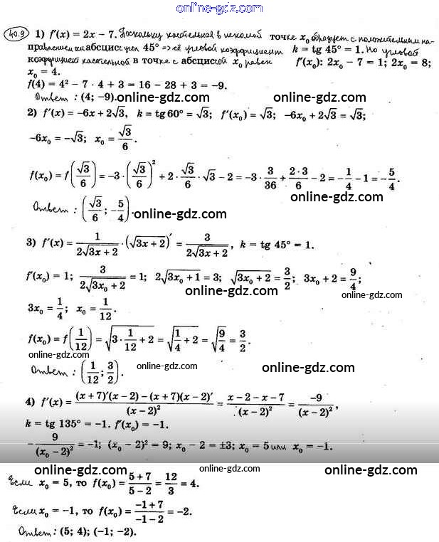 Готовые домашние задания по Алгебре за 10 класс Учебник Мерзляк, Номировский Алгоритм успеха Углубленный уровень 2019 - §40. Уравнение касательной 40.9