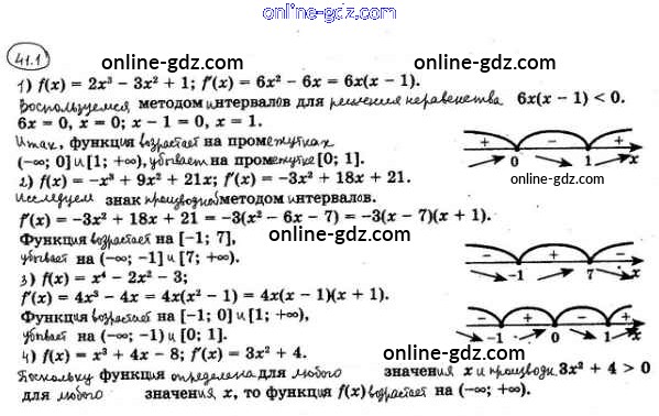 Готовые домашние задания по Алгебре за 10 класс Учебник Мерзляк, Номировский Алгоритм успеха Углубленный уровень 2019 - §41. Признаки возрастания и убывания функции 41.1