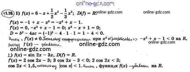 Готовые домашние задания по Алгебре за 10 класс Учебник Мерзляк, Номировский Алгоритм успеха Углубленный уровень 2019 - §41. Признаки возрастания и убывания функции 41.10