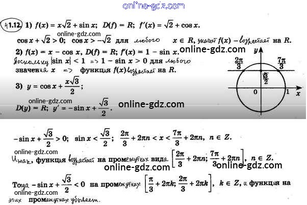 Готовые домашние задания по Алгебре за 10 класс Учебник Мерзляк, Номировский Алгоритм успеха Углубленный уровень 2019 - §41. Признаки возрастания и убывания функции 41.12