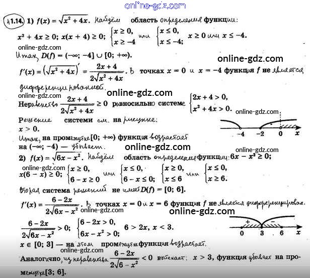 Готовые домашние задания по Алгебре за 10 класс Учебник Мерзляк, Номировский Алгоритм успеха Углубленный уровень 2019 - §41. Признаки возрастания и убывания функции 41.14