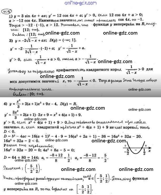 Готовые домашние задания по Алгебре за 10 класс Учебник Мерзляк, Номировский Алгоритм успеха Углубленный уровень 2019 - §41. Признаки возрастания и убывания функции 41.18