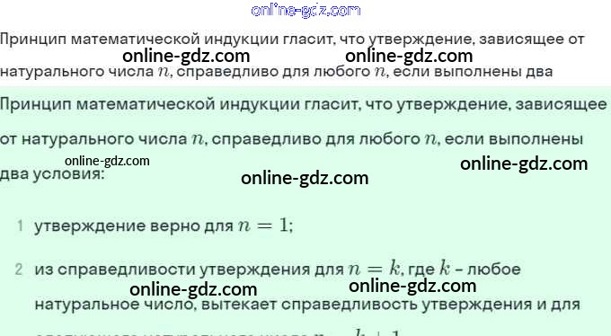 Готовые домашние задания по Алгебре за 10 класс Учебник Мордкович, Семёнов Базовый и углубленный уровень 2017 - §6. Метод математической индукции 3