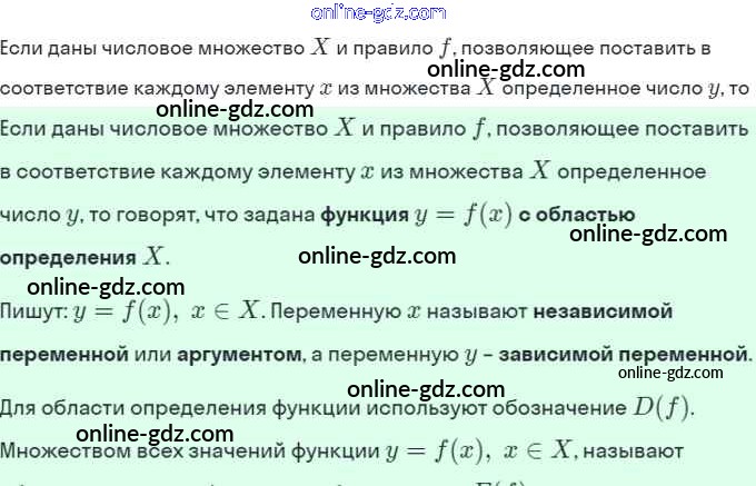 Готовые домашние задания по Алгебре за 10 класс Учебник Мордкович, Семёнов Базовый и углубленный уровень 2017 - §7. Определение числовой функции и способы её задания 1