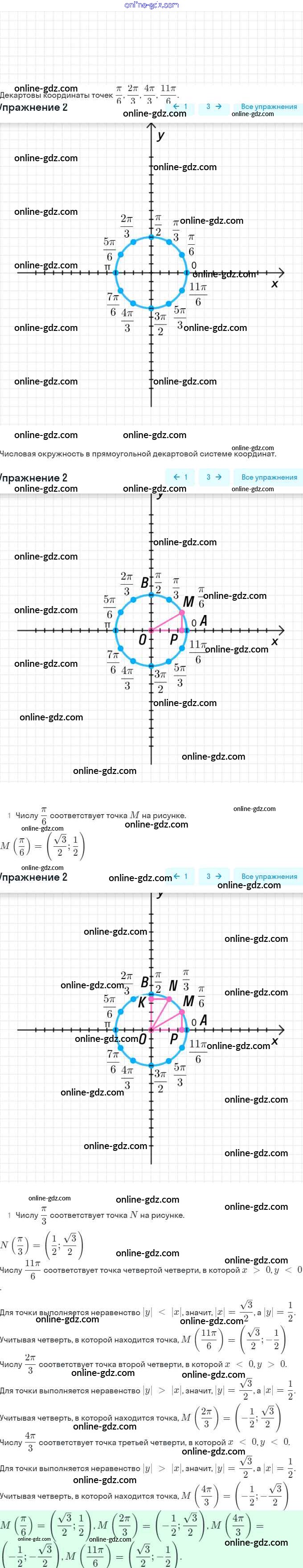 Готовые домашние задания по Алгебре за 10 класс Учебник Мордкович, Семёнов Базовый и углубленный уровень 2017 - §12. Числовая окружность на координатной плоскости 2