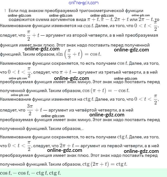 Готовые домашние задания по Алгебре за 10 класс Учебник Мордкович, Семёнов Базовый и углубленный уровень 2017 - §26. Формулы приведения 1