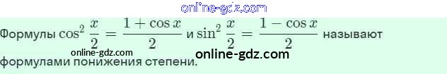 Готовые домашние задания по Алгебре за 10 класс Учебник Мордкович, Семёнов Базовый и углубленный уровень 2017 - §27. Формулы двойного аргумента. Формулы понижения степени 3