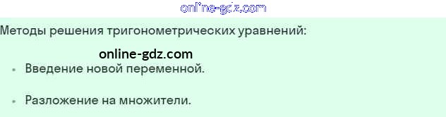 Готовые домашние задания по Алгебре за 10 класс Учебник Мордкович, Семёнов Базовый и углубленный уровень 2017 - §31. Методы решения тригонометрических уравнений 1