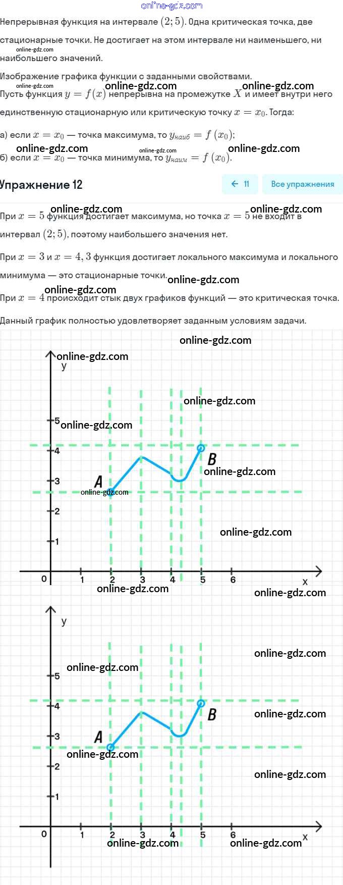 Готовые домашние задания по Алгебре за 10 класс Учебник Мордкович, Семёнов Базовый и углубленный уровень 2017 - §46. Нахождение наибольших и наименьших значений функции 12