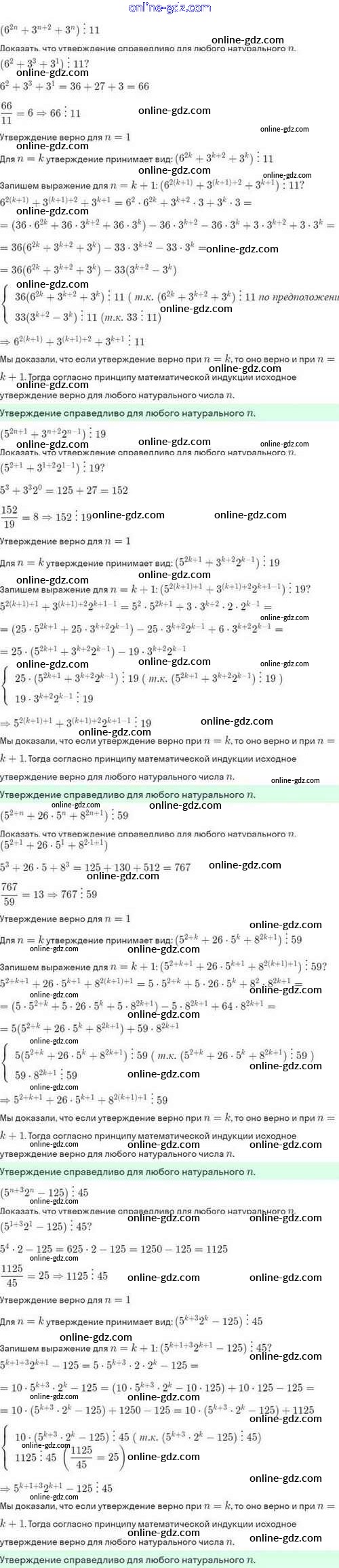 Готовые домашние задания по Алгебре за 10 класс Задачник Мордкович, Семёнов Базовый и углубленный уровень 2017 - §6. Метод математической индукции 6.21
