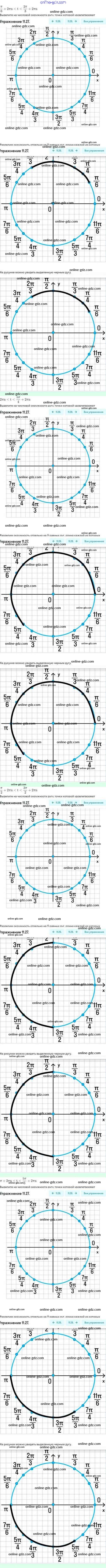 Готовые домашние задания по Алгебре за 10 класс Задачник Мордкович, Семёнов Базовый и углубленный уровень 2017 - §11. Числовая окружность 11.27