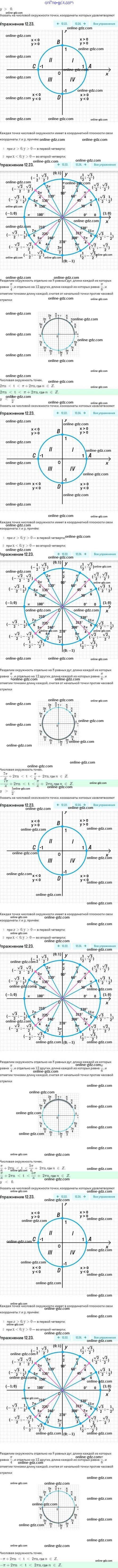 Готовые домашние задания по Алгебре за 10 класс Задачник Мордкович, Семёнов Базовый и углубленный уровень 2017 - §12. Числовая окружность на координатной плоскости 12.23