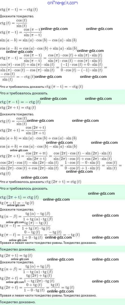 Готовые домашние задания по Алгебре за 10 класс Задачник Мордкович, Семёнов Базовый и углубленный уровень 2017 - §13. Синус и косинус. Тангенс и котангенс 13.29