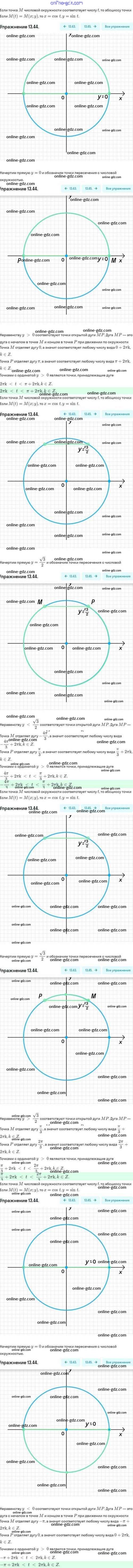 Готовые домашние задания по Алгебре за 10 класс Задачник Мордкович, Семёнов Базовый и углубленный уровень 2017 - §13. Синус и косинус. Тангенс и котангенс 13.44