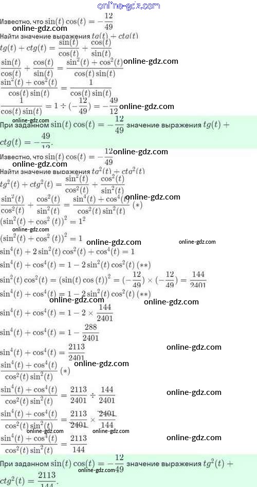 Готовые домашние задания по Алгебре за 10 класс Задачник Мордкович, Семёнов Базовый и углубленный уровень 2017 - §14. Тригонометрические функции числового аргумента 14.24