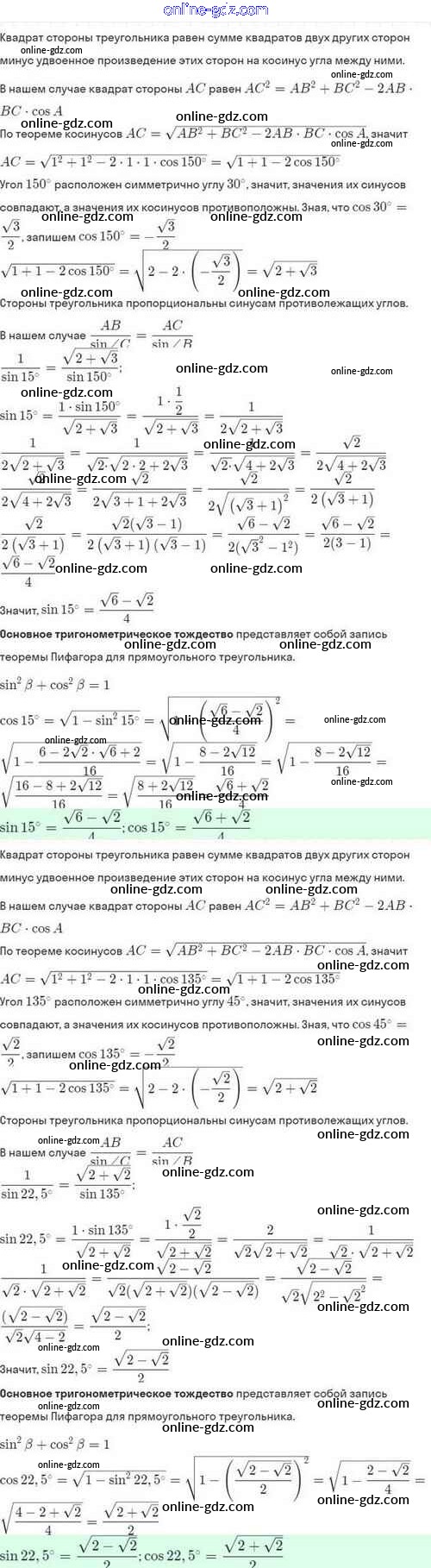 Готовые домашние задания по Алгебре за 10 класс Задачник Мордкович, Семёнов Базовый и углубленный уровень 2017 - §15. Тригонометрические функции углового аргумента 15.15