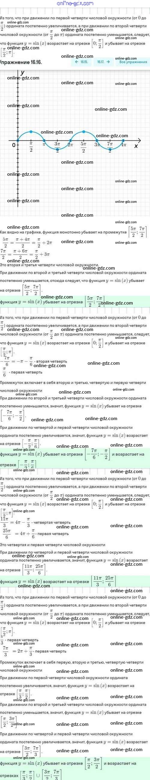 Готовые домашние задания по Алгебре за 10 класс Задачник Мордкович, Семёнов Базовый и углубленный уровень 2017 - §16. Функции y=sinx, y=cosx, их свойства и графики 16.16