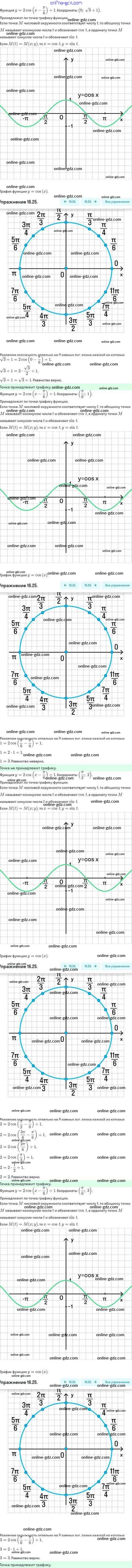 Готовые домашние задания по Алгебре за 10 класс Задачник Мордкович, Семёнов Базовый и углубленный уровень 2017 - §16. Функции y=sinx, y=cosx, их свойства и графики 16.25