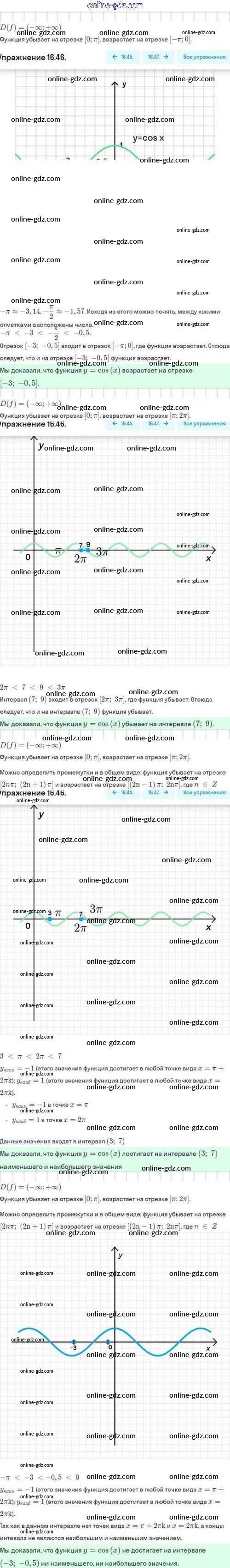 Готовые домашние задания по Алгебре за 10 класс Задачник Мордкович, Семёнов Базовый и углубленный уровень 2017 - §16. Функции y=sinx, y=cosx, их свойства и графики 16.46