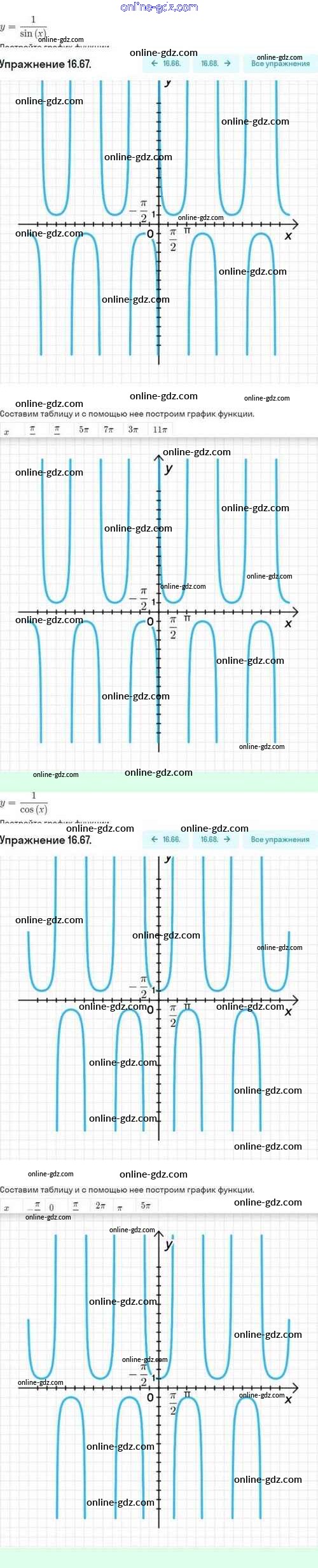 Готовые домашние задания по Алгебре за 10 класс Задачник Мордкович, Семёнов Базовый и углубленный уровень 2017 - §16. Функции y=sinx, y=cosx, их свойства и графики 16.67