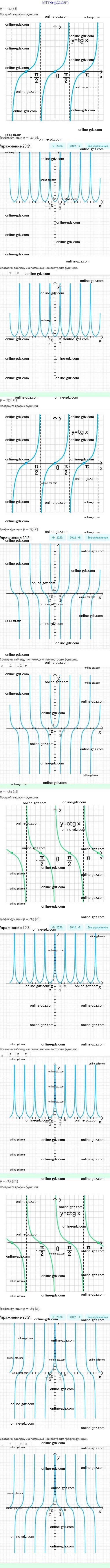 Готовые домашние задания по Алгебре за 10 класс Задачник Мордкович, Семёнов Базовый и углубленный уровень 2017 - §20. Функции y=tgx, y=ctgx, их свойства и графики 20.21