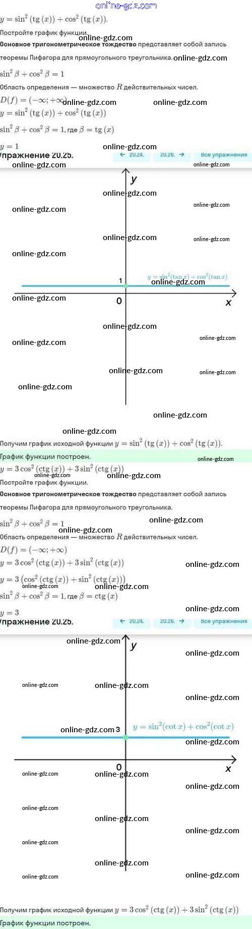 Готовые домашние задания по Алгебре за 10 класс Задачник Мордкович, Семёнов Базовый и углубленный уровень 2017 - §20. Функции y=tgx, y=ctgx, их свойства и графики 20.25
