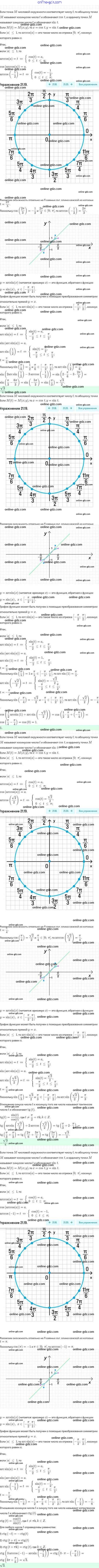 Готовые домашние задания по Алгебре за 10 класс Задачник Мордкович, Семёнов Базовый и углубленный уровень 2017 - §21. Обратные тригонометрические функции 21.19