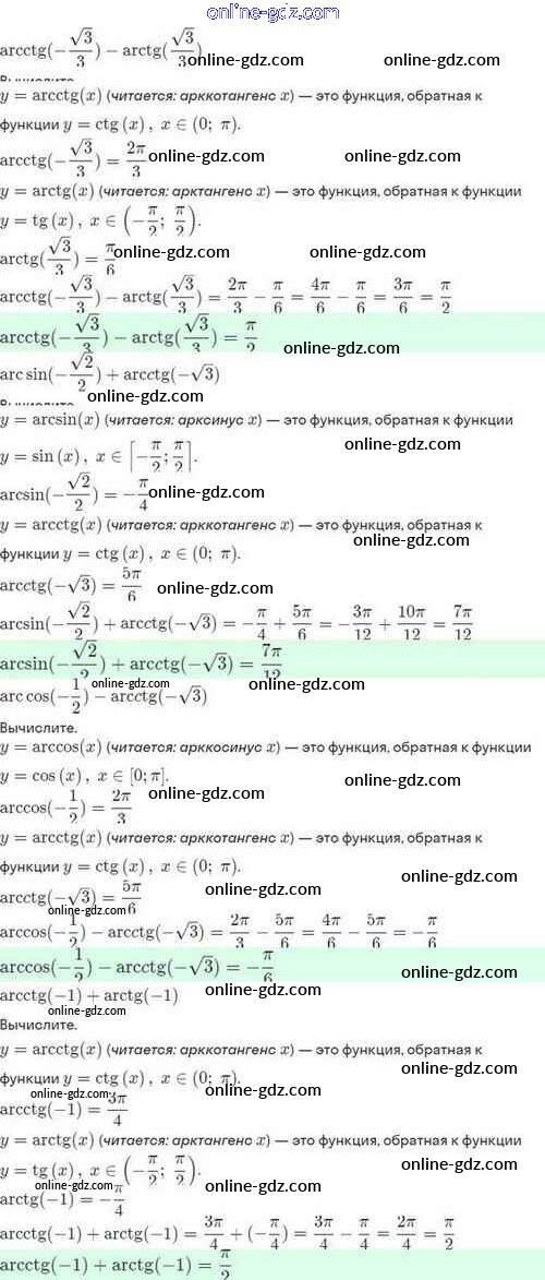 Готовые домашние задания по Алгебре за 10 класс Задачник Мордкович, Семёнов Базовый и углубленный уровень 2017 - §21. Обратные тригонометрические функции 21.33