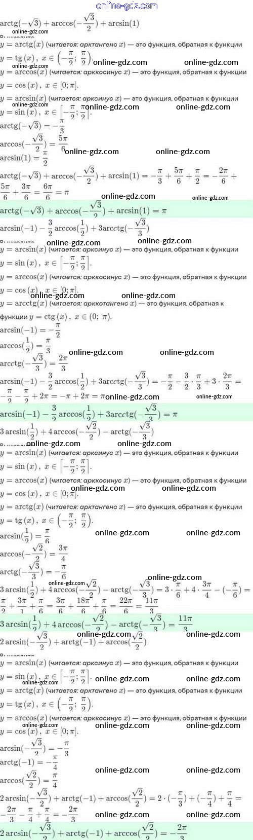 Готовые домашние задания по Алгебре за 10 класс Задачник Мордкович, Семёнов Базовый и углубленный уровень 2017 - §21. Обратные тригонометрические функции 21.34
