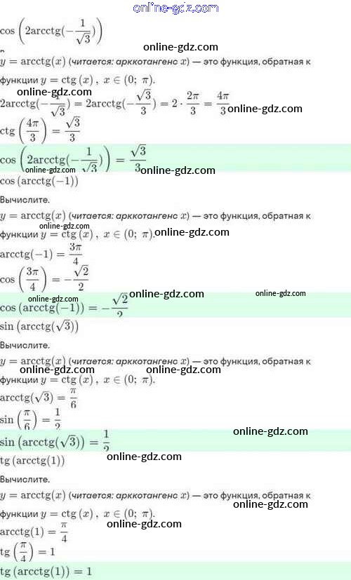 Готовые домашние задания по Алгебре за 10 класс Задачник Мордкович, Семёнов Базовый и углубленный уровень 2017 - §21. Обратные тригонометрические функции 21.36
