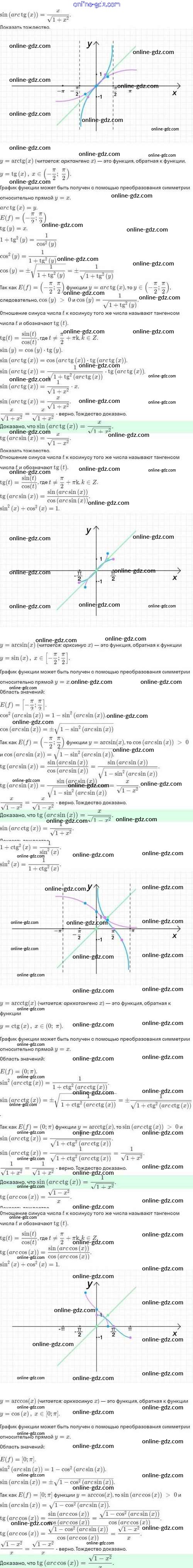 Готовые домашние задания по Алгебре за 10 класс Задачник Мордкович, Семёнов Базовый и углубленный уровень 2017 - §21. Обратные тригонометрические функции 21.49
