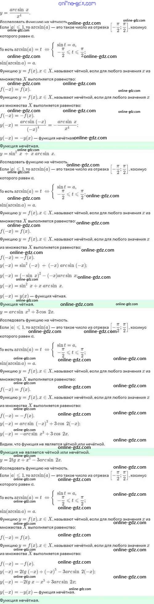 Готовые домашние задания по Алгебре за 10 класс Задачник Мордкович, Семёнов Базовый и углубленный уровень 2017 - §21. Обратные тригонометрические функции 21.6