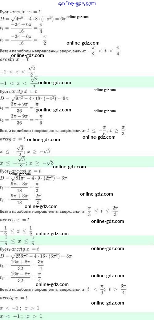 Готовые домашние задания по Алгебре за 10 класс Задачник Мордкович, Семёнов Базовый и углубленный уровень 2017 - §21. Обратные тригонометрические функции 21.62