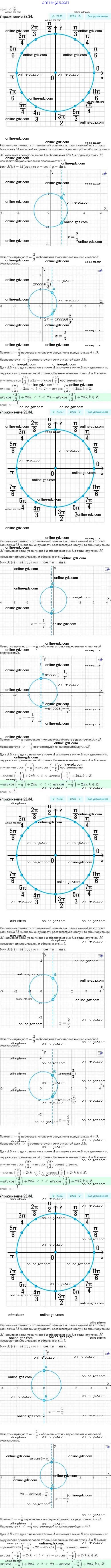 Готовые домашние задания по Алгебре за 10 класс Задачник Мордкович, Семёнов Базовый и углубленный уровень 2017 - §22. Простейшие тригонометрические уравнения и неравенства 22.34