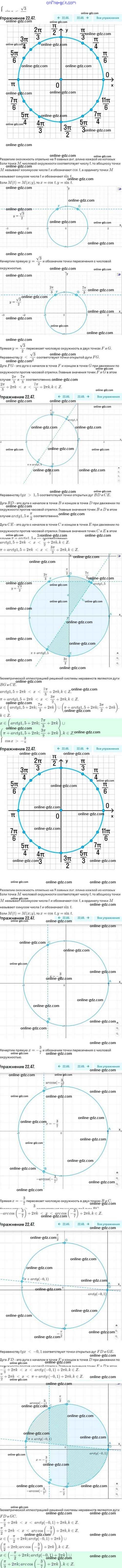 Готовые домашние задания по Алгебре за 10 класс Задачник Мордкович, Семёнов Базовый и углубленный уровень 2017 - §22. Простейшие тригонометрические уравнения и неравенства 22.47