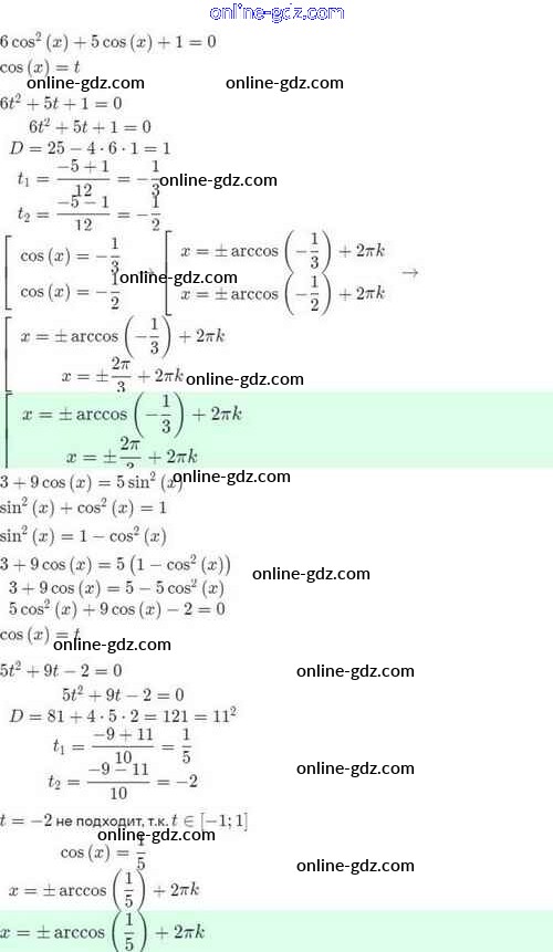 Готовые домашние задания по Алгебре за 10 класс Задачник Мордкович, Семёнов Базовый и углубленный уровень 2017 - §22. Простейшие тригонометрические уравнения и неравенства 22.5