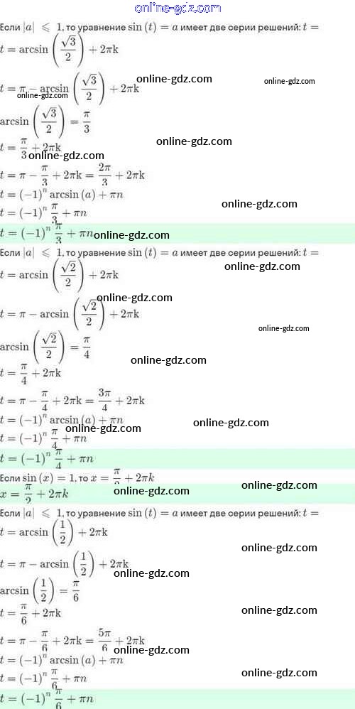 Готовые домашние задания по Алгебре за 10 класс Задачник Мордкович, Семёнов Базовый и углубленный уровень 2017 - §22. Простейшие тригонометрические уравнения и неравенства 22.6