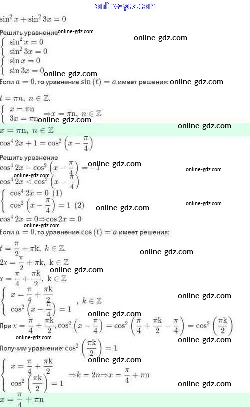 Готовые домашние задания по Алгебре за 10 класс Задачник Мордкович, Семёнов Базовый и углубленный уровень 2017 - §22. Простейшие тригонометрические уравнения и неравенства 22.62