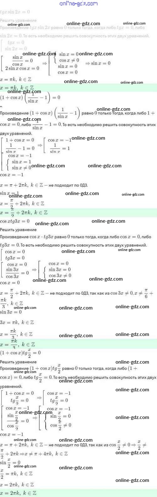 Готовые домашние задания по Алгебре за 10 класс Задачник Мордкович, Семёнов Базовый и углубленный уровень 2017 - §23. Методы решения тригонометрических уравнений 23.10