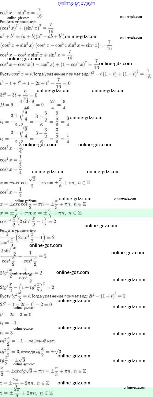 Готовые домашние задания по Алгебре за 10 класс Задачник Мордкович, Семёнов Базовый и углубленный уровень 2017 - §23. Методы решения тригонометрических уравнений 23.24
