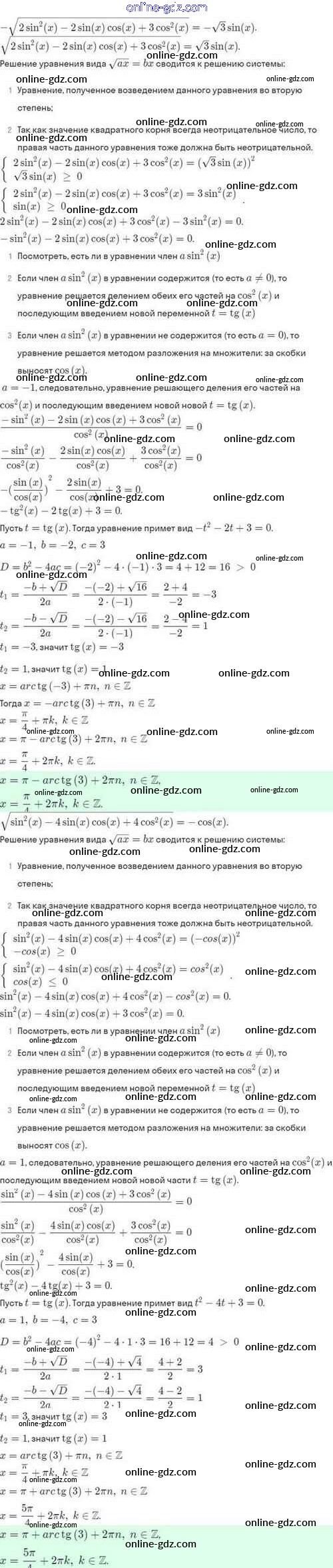 Готовые домашние задания по Алгебре за 10 класс Задачник Мордкович, Семёнов Базовый и углубленный уровень 2017 - §23. Методы решения тригонометрических уравнений 23.37