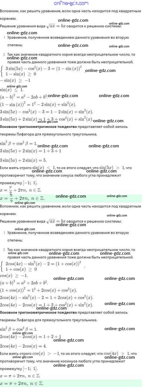 Готовые домашние задания по Алгебре за 10 класс Задачник Мордкович, Семёнов Базовый и углубленный уровень 2017 - §23. Методы решения тригонометрических уравнений 23.38