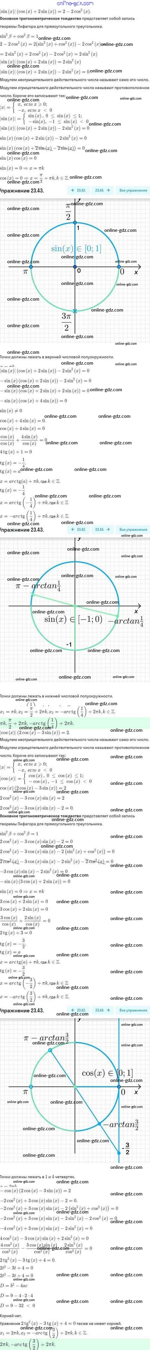 Готовые домашние задания по Алгебре за 10 класс Задачник Мордкович, Семёнов Базовый и углубленный уровень 2017 - §23. Методы решения тригонометрических уравнений 23.43
