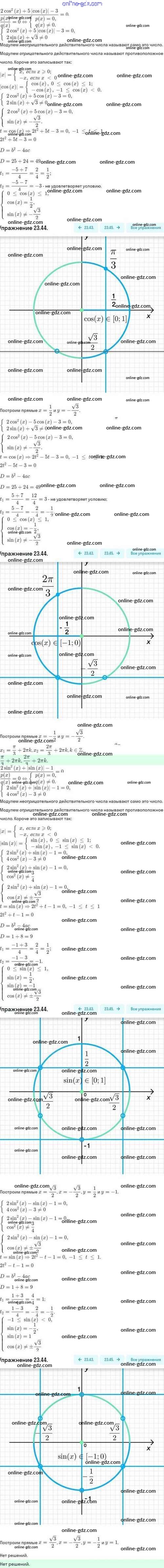 Готовые домашние задания по Алгебре за 10 класс Задачник Мордкович, Семёнов Базовый и углубленный уровень 2017 - §23. Методы решения тригонометрических уравнений 23.44