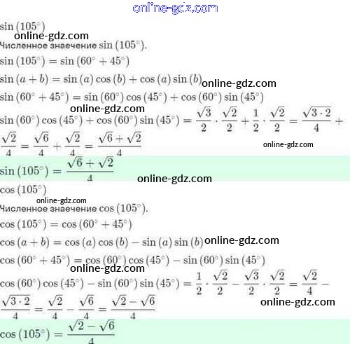 Готовые домашние задания по Алгебре за 10 класс Задачник Мордкович, Семёнов Базовый и углубленный уровень 2017 - §24. Синус и косинус суммы и разности аргументов 24.1