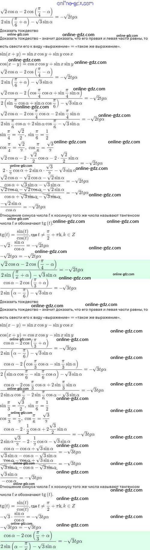 Готовые домашние задания по Алгебре за 10 класс Задачник Мордкович, Семёнов Базовый и углубленный уровень 2017 - §24. Синус и косинус суммы и разности аргументов 24.12