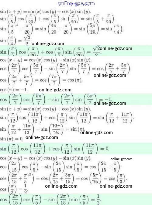 Готовые домашние задания по Алгебре за 10 класс Задачник Мордкович, Семёнов Базовый и углубленный уровень 2017 - §24. Синус и косинус суммы и разности аргументов 24.16